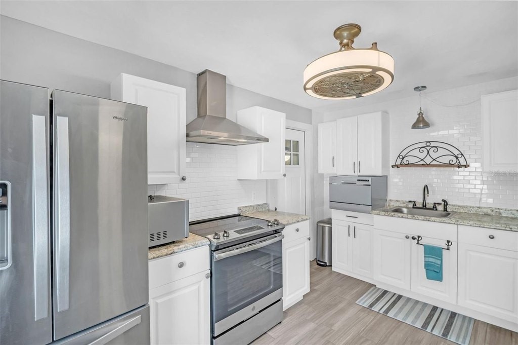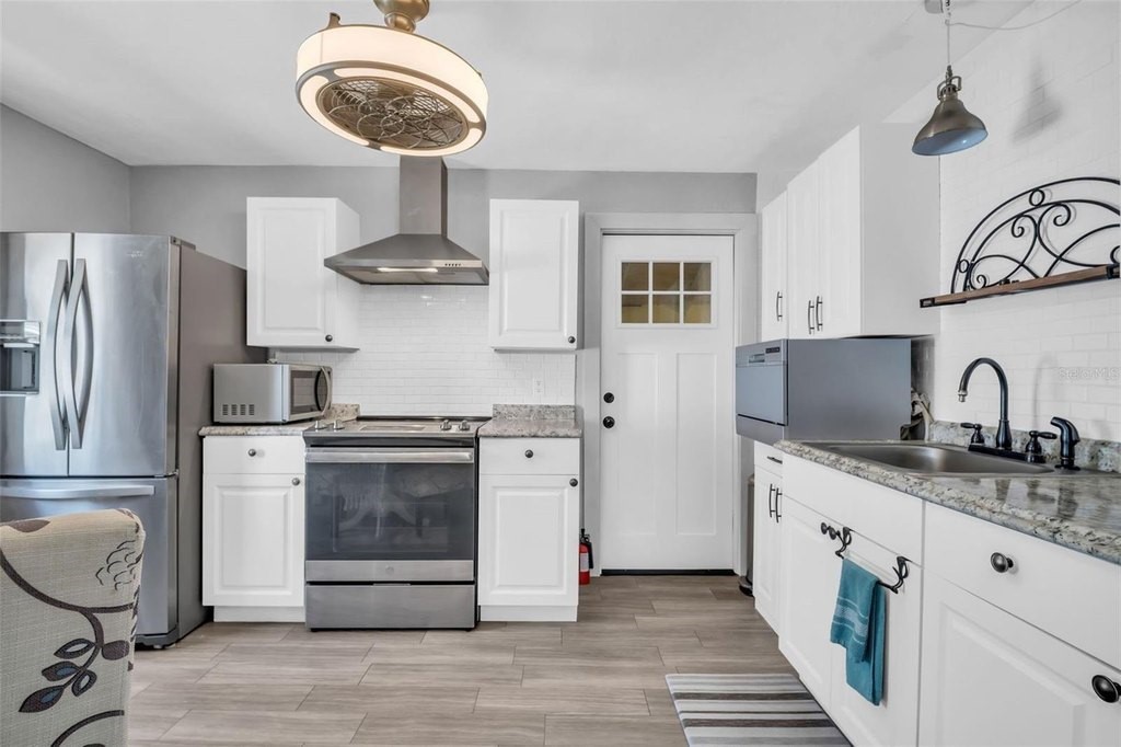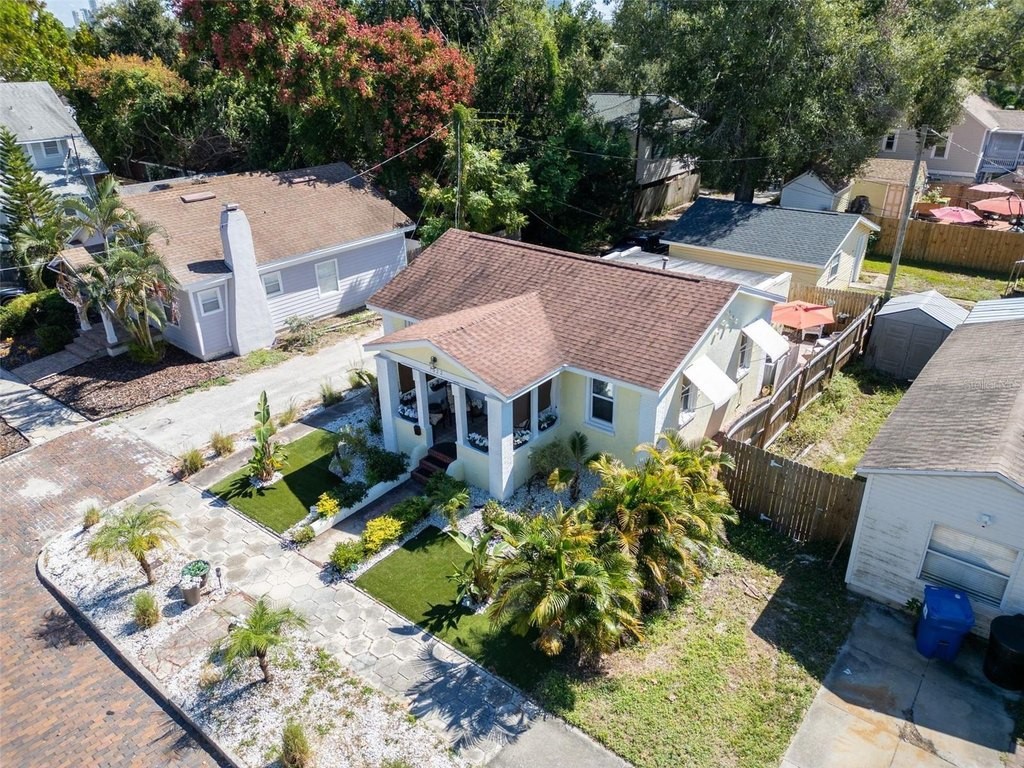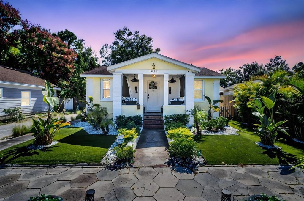 Welcome to your slice of St. Pete sunshine! This charming 2-bedroom, 1-bath home in the heart of the vibrant Euclid neighborhood perfectly blends modern updates with cozy Florida charm. Situated high and dry in an X flood zone with 50-foot elevation, you'll enjoy peace of mind and everyday convenience just minutes from downtown St. Petersburg's shops, dining, and waterfront parks. Step inside to a bright, open living space featuring luxury vinyl plank flooring throughout, modern white cabinetry, subway tile backsplash, and stainless-steel appliances in the cheerful eat-in kitchen. Thoughtful updates, including a newer roof (2015), A/C system (2018), water heater (2018), and updated electric and plumbing (2019), make this home move-in ready and worry-free. Outside, enjoy Florida living at its best with a covered front porch, artificial turf and lush landscaping in front, and a paver patio and sitting area in back, perfect for morning coffee or evening gatherings under the stars. There's also a one-car garage with additional street and side parking for guests. With low-maintenance features, modern upgrades, and prime proximity to Crescent Lake, trendy restaurants, and St. Pete's buzzing downtown core, this home offers an unbeatable combination of charm, convenience, and lifestyle.